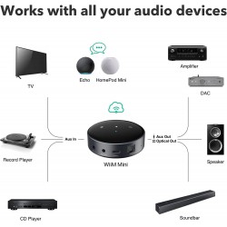 Wiim Mini ti permetterà di trasmettere la tua musica in remoto tramite WiFi, Airplay 2 o Bluetooth 5.2. Compatibile con gli assistenti vocali Amazon Alexa e Apple Siri. Compatibile con molti servizi di streaming e web radio, come Spotify, Tidal, Qobuz, Deezer, Amazon Music o TuneIn. App mobile WiiM Home gratuita per iOS e Android per controllare facilmente tutti i dispositivi WiiM collegati alla rete. La funzione multiroom integrata di WiiM Mini ti consente di trasmettere la tua musica in tutta la casa.